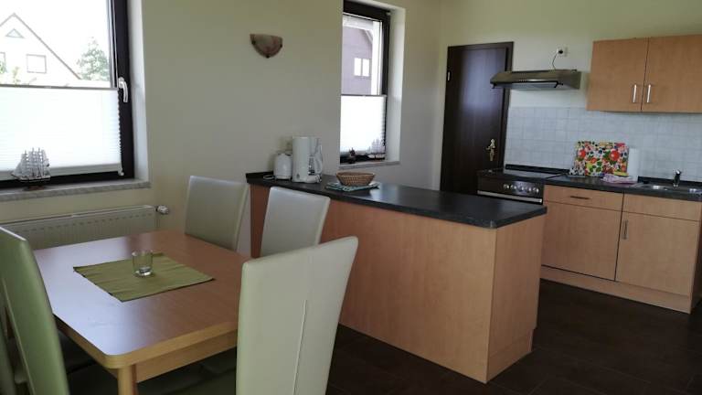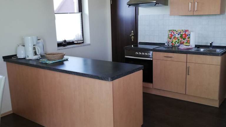 Die Unterkunft verfügt über eine voll ausgestattete Küche mit Kühlschrank und Geschirrspüler. Zudem können die Gäste Grillmöglichkeiten nutzen.