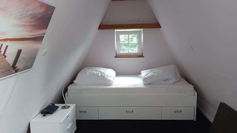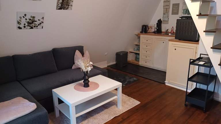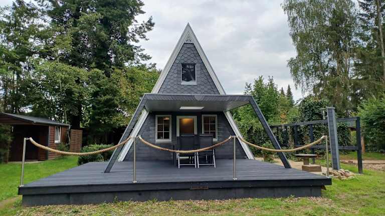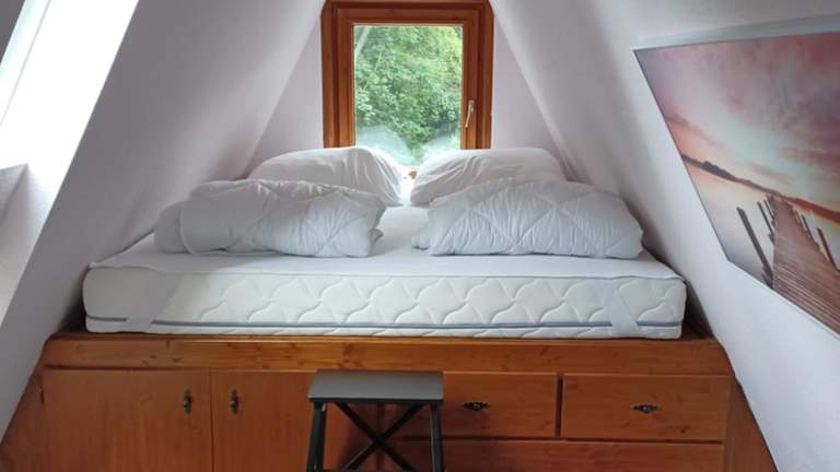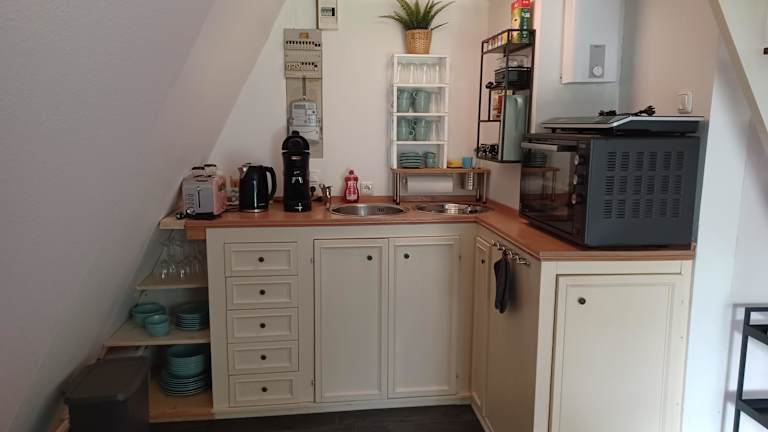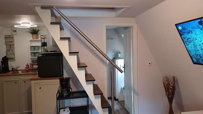 Das Ferienhaus umfasst ein Schlafzimmer, ein Wohnzimmer sowie eine voll ausgestattete Küche mit einem Kühlschrank und einer Kaffeemaschine. Zudem gibt es ein Badezimmer mit einer Dusche. Handtücher und Bettwäsche werden bereitgestellt.