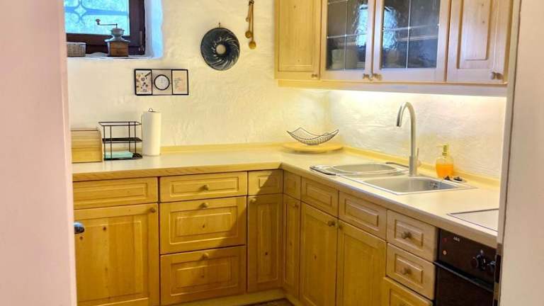Das Ferienhaus umfasst zwei Schlafzimmer, ein Wohnzimmer und eine voll ausgestattete Küche, die mit einem Kühlschrank und einer Kaffeemaschine ausgestattet ist. Darüber hinaus gibt es ein Badezimmer mit Dusche und Haartrockner.