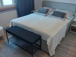 Das Ferienhaus bietet zwei Schlafzimmer und ist mit einer Küche ausgestattet, die über einen Kühlschrank und einen Ofen verfügt. Es stehen zwei Badezimmer mit Dusche und Haartrockner zur Verfügung. Handtücher und Bettwäsche werden bereitgestellt.