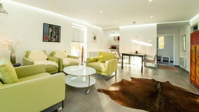 Die Freizeitmöglichkeiten umfassen einen Innenpool, Radfahren und einen Garten, wo Gäste entspannen können. Ein Kinderspielplatz ist ebenfalls vorhanden.