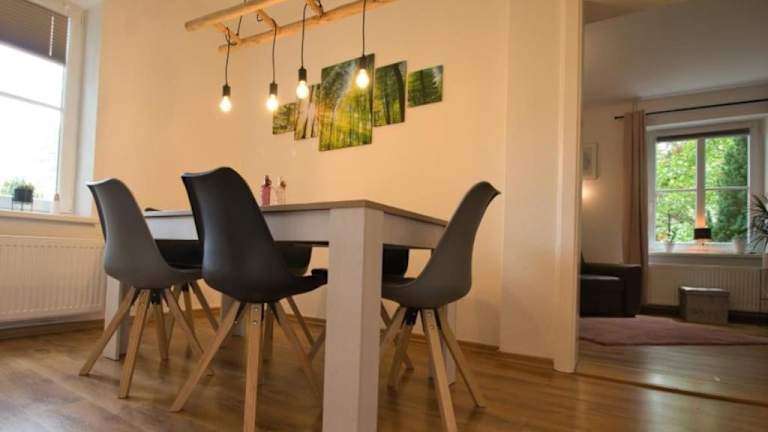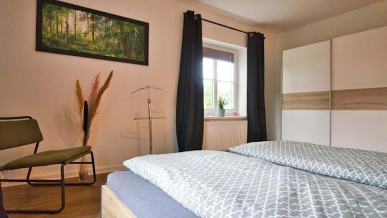 Die Unterkunft Ferienhaus Haas - Am Heidschnuckenweg befindet sich in Faßberg und bietet eine ruhige Lage in der Natur. Am Heidschnuckenweg gelegen, ermöglicht sie einen Blick auf die umliegende Gartenlandschaft. Die Entfernung zu verschiedenen Attraktionen beträgt 30 km zum Heide Park Soltau, 36 km zum Kloster Ebstorf und 39 km zum Bomann-Museum. Das Deutsche Panzermuseum ist 14 km weit entfernt, während der Lopausee in 40 km Entfernung liegt. Der nächstgelegene Flughafen ist Hannover-Langenhagen, 90 km von der Unterkunft entfernt.