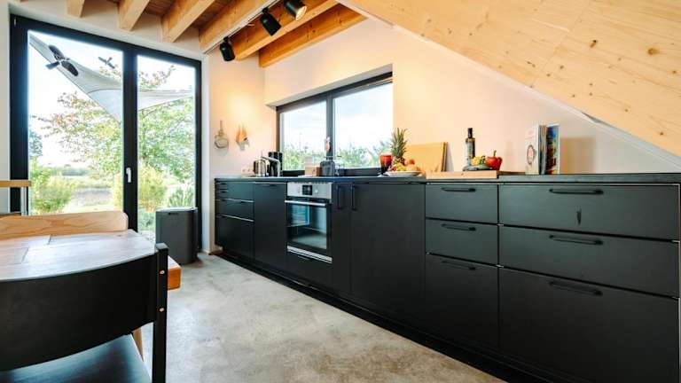 Die Unterkunft bietet eine Küche, ausgestattet mit einem Ofen und einer Herdplatte, für eine individuelle Selbstversorgung. Es sind keine weiteren Verpflegungsmöglichkeiten angegeben.