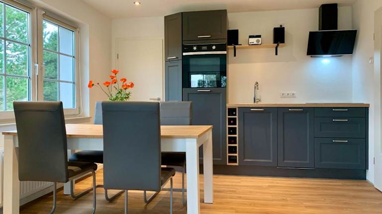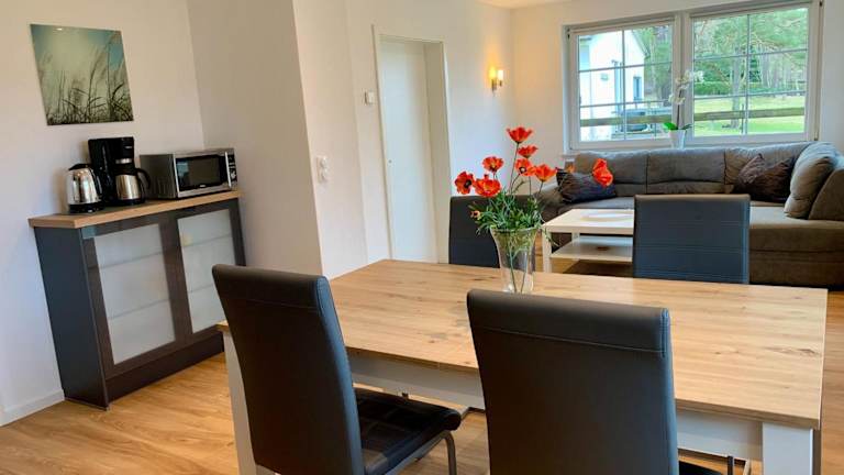 Die Ferienwohnung hat zwei Schlafzimmer, ein Wohnzimmer und ein Badezimmer mit Dusche. Zur Ausstattung gehören ein Flachbild-TV, eine gut ausgestattete Küche mit Kühlschrank und Geschirrspüler sowie Handtücher und Bettwäsche.