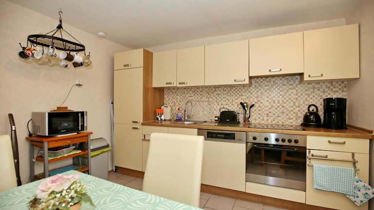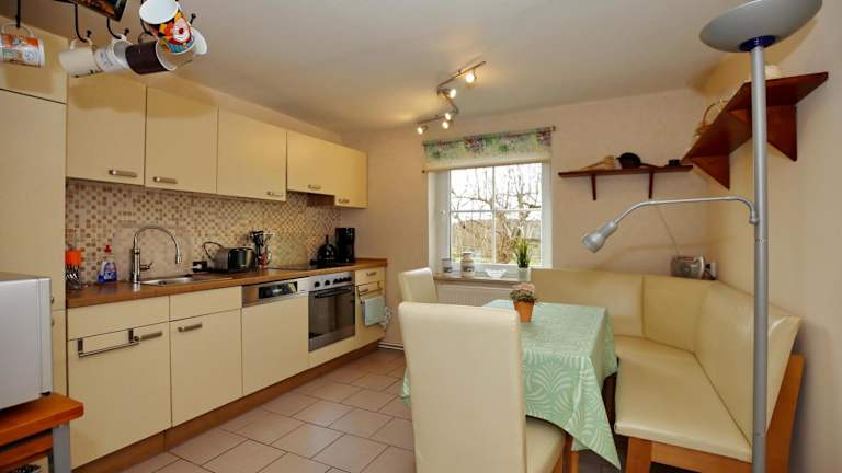 Das Ferienhaus bietet ein Schlafzimmer und eine gut ausgestattete Küche, die unter anderem mit einem Kühlschrank und einem Geschirrspüler ausgestattet ist. Weiterhin gehört ein Wohnzimmer zur Ausstattung, ebenso wie ein TV. Bitte beachten Sie, dass Bettwäsche und Handtücher nicht im Zimmerpreis enthalten sind. Diese können gegen eine Gebühr vor Ort gemietet oder selbst mitgebracht werden.