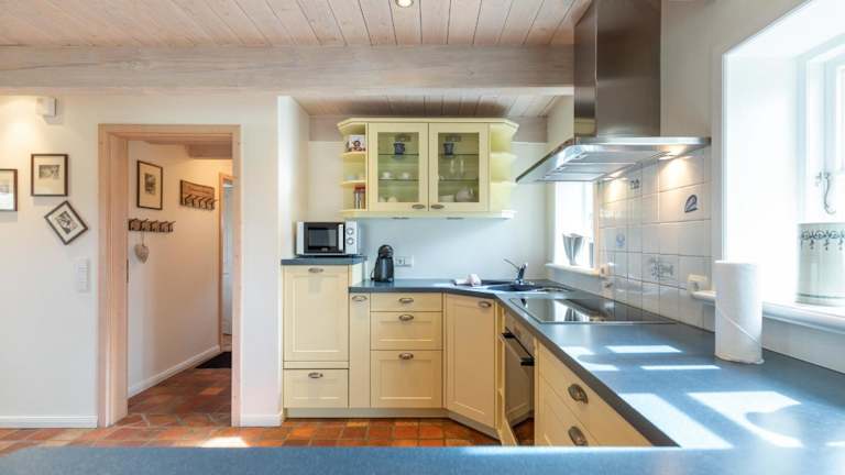 Das Ferienhaus verfügt über zwei Schlafzimmer und ist mit einem Fernseher mit Satellitenkanälen ausgestattet. Die voll ausgestattete Küche beinhaltet einen Kühlschrank, einen Geschirrspüler, eine Waschmaschine, einen Ofen und eine Mikrowelle.