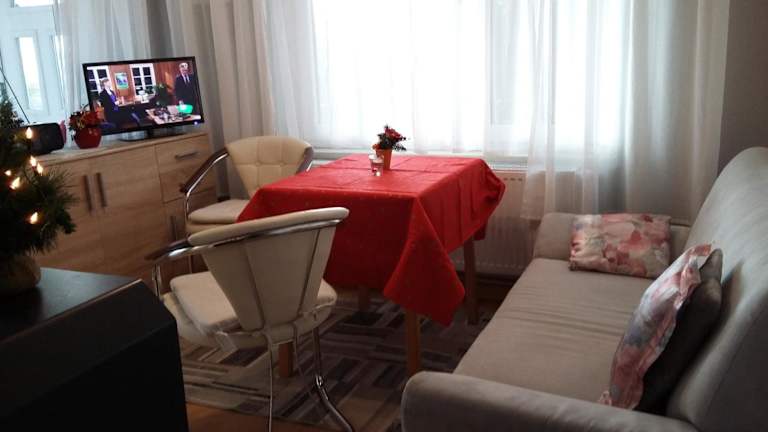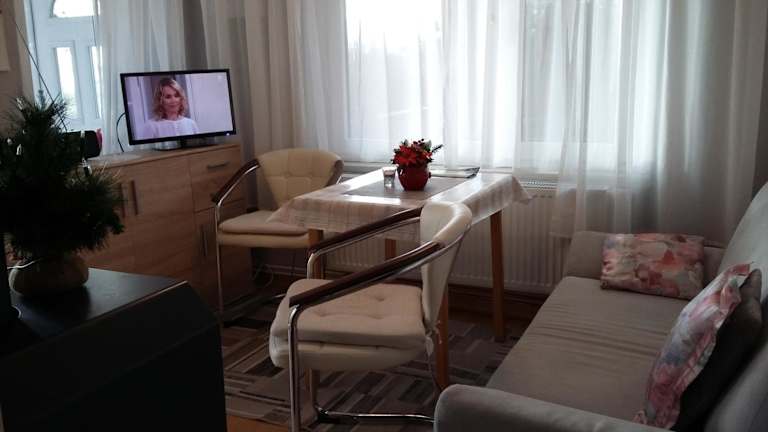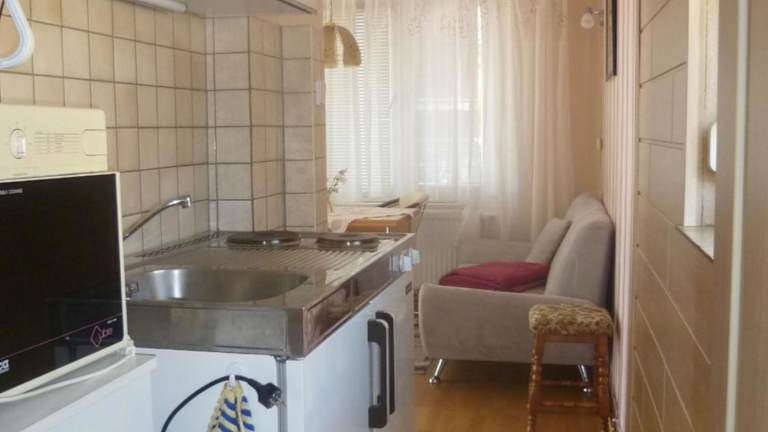 Das Ferienhaus verfügt über ein Schlafzimmer, ein Wohnzimmer sowie ein Badezimmer mit Badewanne oder Dusche. Die gut ausgestattete Küchenzeile enthält einen Kühlschrank und eine Mikrowelle. Eine Terrasse bietet Stadtblick, und Handtücher sowie Bettwäsche werden zur Verfügung gestellt.