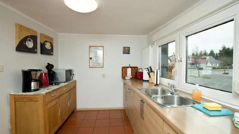 Das Ferienhaus im Grünen Eifel bietet geräumige Unterkünfte mit einem gemütlichen Wohnzimmer, Ledersofas und einem Flachbild-TV. Es gibt einen Essbereich und zwei Badezimmer. Die Unterkunft ist in hellen Farben gestaltet und mit Holzböden ausgestattet. Die voll ausgestattete Küche bietet alles, was Sie für die Zubereitung eigener Mahlzeiten benötigen, einschließlich Herd, Backofen, Kühlschrank, Toaster, Mikrowelle und Spülmaschine.