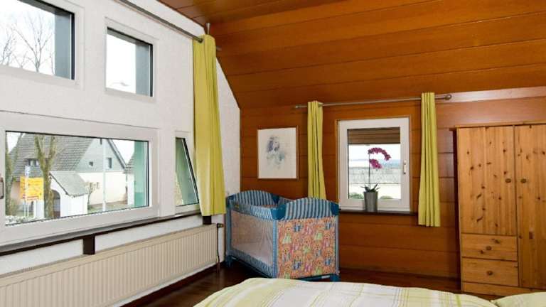 Das Ferienhaus im Grünen Eifel liegt in einem idyllischen Tal, nur 14 km von Monschau entfernt. Die Umgebung bietet viele Möglichkeiten, die Natur zu erkunden, darunter der Naturpark Hohes Venn-Eifel, der nur 6 km entfernt ist. Der Rursee, 15 km entfernt, bietet Möglichkeiten zum Baden und Wassersport. Auch ein Besuch der Altstadt von Monschau oder ein Ausflug nach Aachen, 28 km entfernt, lohnen sich. Der Bahnhof Kall ist 15 km entfernt.