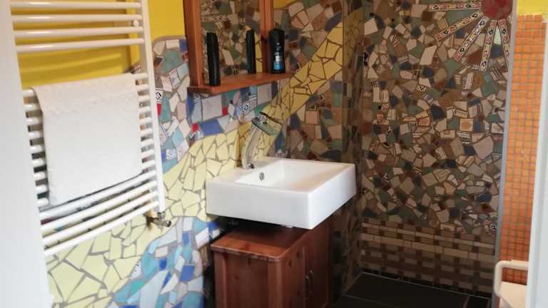 Das Ferienhaus ist ausgestattet mit einem Schlafzimmer und einem Badezimmer. Zur weiteren Ausstattung gehören Bettwäsche, Handtücher, ein Flachbild-TV mit Satellitenkanälen, ein Essbereich sowie eine voll ausgestattete Küche. Zudem gibt es eine Terrasse mit Blick auf den Garten.