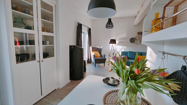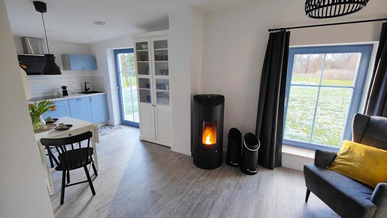 Das Ferienhaus bietet eine gut ausgestattete Küche mit Kühlschrank und Geschirrspüler für Selbstversorger. Grillmöglichkeiten sind ebenfalls vorhanden, um im Freien zu speisen.