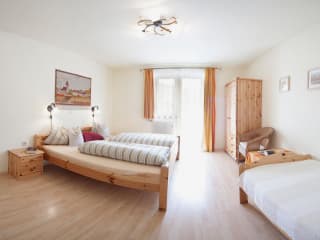 m Erdgeschoss Ihres neuen Urlaubszuhauses befindet sich ein Schlafzimmer mit TV, ein Bad sowie separates WC. Sie erwartet eine gemütliche Wohnküche mit Geschirrspüler, Stereoanlage, Toaster, Mikrowelle, Kaffeemaschine sowie das nötigen Geschirr. Außerdem haben Sie noch ein schönes Stüberl (Wohnzimmer) mit Kachelofen zur Verfügung (Esstisch, Eckbank, TV, Sofa). Im 1. Stock befinden sich drei Schlafzimmer, eine Dusche und ein separates WC. Alle Schlafzimmer verfügen über ein eigenes Waschbecken sowie Balkon. Für Ihre Wertsachen stellen wir Ihnen gerne einen Safe zur Verfügung.