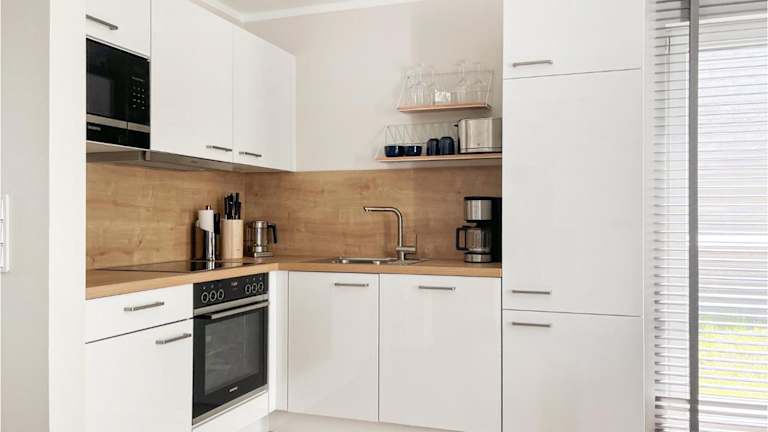 Das Ferienhaus umfasst 2 Schlafzimmer, ein Wohnzimmer, eine voll ausgestattete Küche mit Kühlschrank und Kaffeemaschine sowie 1 Badezimmer mit Dusche. Zu den Annehmlichkeiten zählen Gartenmöbel und Rauchmelder.