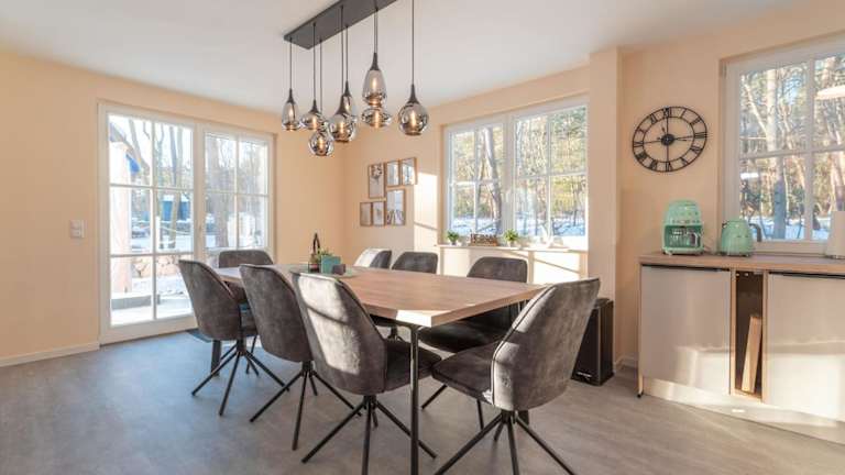 Das Ferienhaus Kieferneck bietet eine Unterkunft mit vier Schlafzimmern, einem Wohnzimmer und zwei Badezimmern. Neben einem Flachbild-TV steht den Gästen eine gut ausgestattete Küchenzeile zur Verfügung, die mit einem Kühlschrank und einem Geschirrspüler ausgestattet ist. Die Unterkunft verfügt über ein Gartenblick, eine Terrasse sowie Annehmlichkeiten wie kostenloses WLAN und eine rund um die Uhr besetzte Rezeption. Ein Aufenthalt ist nur für Erwachsene ab 18 Jahren geeignet, und es sind keine Haustiere erlaubt.