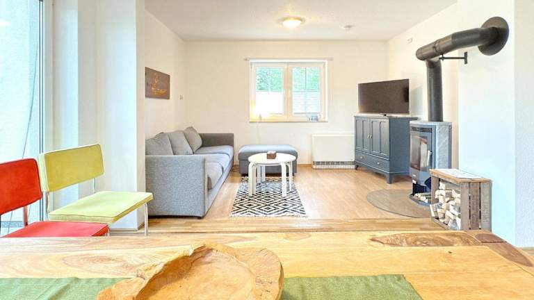 Das Ferienhaus verfügt über ein Wohnzimmer mit einem Flachbild-TV und eine voll ausgestattete Küche mit Kühlschrank und Geschirrspüler. Es gibt außerdem zwei Badezimmer mit Dusche, die den Komfort während des Aufenthalts erhöhen.