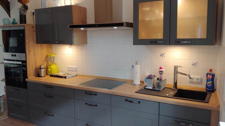 Das Ferienhaus verfügt über drei Schlafzimmer sowie eine voll ausgestattete Küche, die mit einem Kühlschrank und einem Geschirrspüler ausgestattet ist. Zusätzlich bietet das Badezimmer eine Dusche und einen Haartrockner. Handtücher und Bettwäsche werden zur Verfügung gestellt.