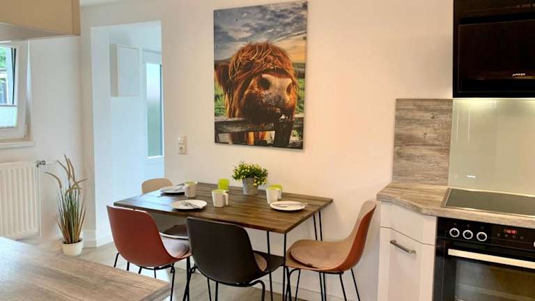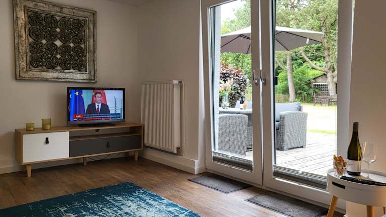 Das Ferienhaus verfügt über 2 Schlafzimmer und ist im Erdgeschoss gelegen. Zur Ausstattung gehören ein TV sowie eine voll ausgestattete Küche, die einen Kühlschrank, Geschirrspüler, Waschmaschine, Ofen und Mikrowelle umfasst.