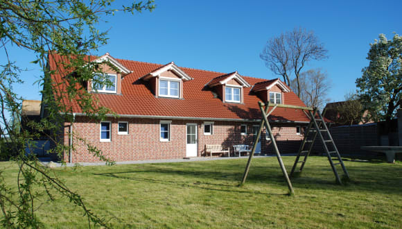 Die vier im Landhausstil eingerichteten Ferienwohnungen verfügen alle über bestuhlte Terrassen und haben jeweils ein Erd- und ein Obergeschoss. Die Appartements haben je eine separate Küche, ein Duschbad und den Wohnraum im Erdgeschoß. Im Dachgeschoß befinden sich die beiden Schlafzimmer - Eines mit 1 Doppelbett und das Andere mit 2 Einzelbetten. Die Bettwäsche ist im Übernachtungspreis bereits inklusive!