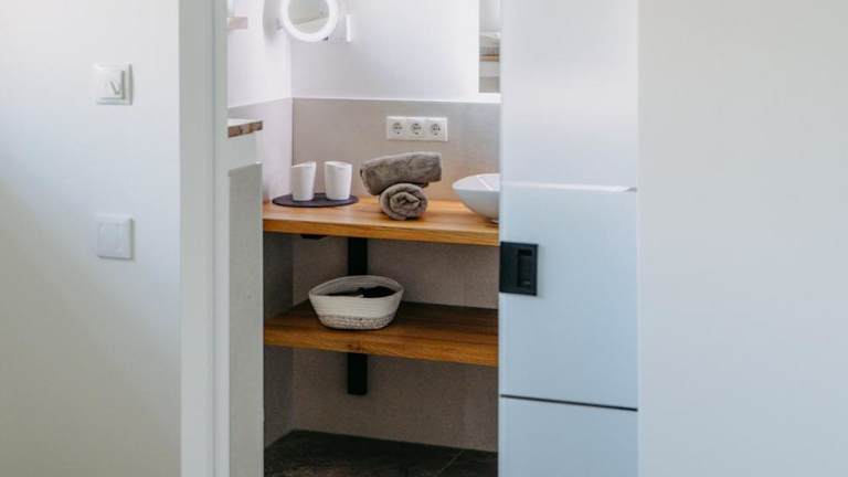 Das Ferienhaus besteht aus zwei Schlafzimmern, einem Wohnzimmer und einer voll ausgestatteten Küche, die unter anderem über einen Kühlschrank und eine Kaffeemaschine verfügt. Es gibt zwei Badezimmer, die mit einem Bidet und einer Dusche ausgestattet sind. Handtücher und Bettwäsche werden bereitgestellt.