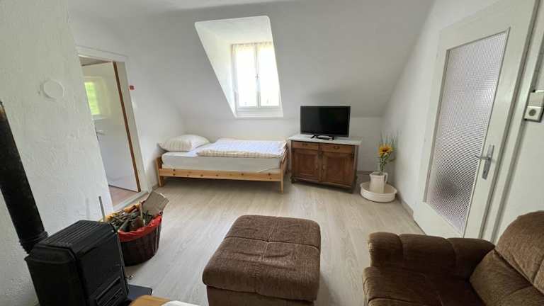 Das Ferienhaus umfasst 1 Schlafzimmer und ein Wohnzimmer. Es ist mit einem TV ausgestattet und enthält eine gut ausgestattete Küche mit Kühlschrank und Ofen. Ein Badezimmer mit Dusche ist ebenfalls vorhanden. Handtücher und Bettwäsche werden bereitgestellt.