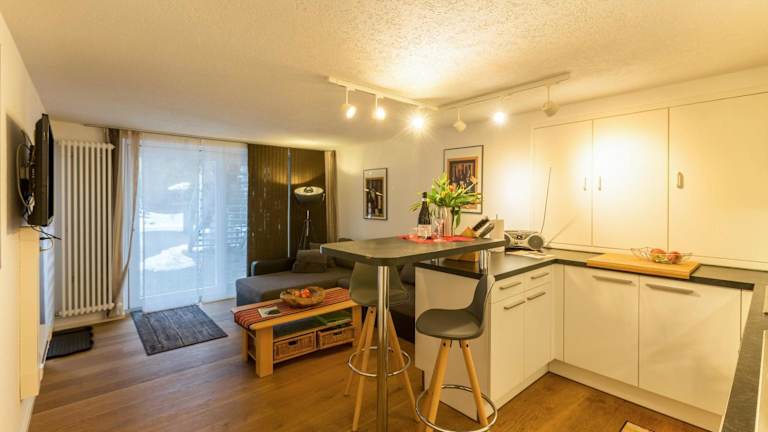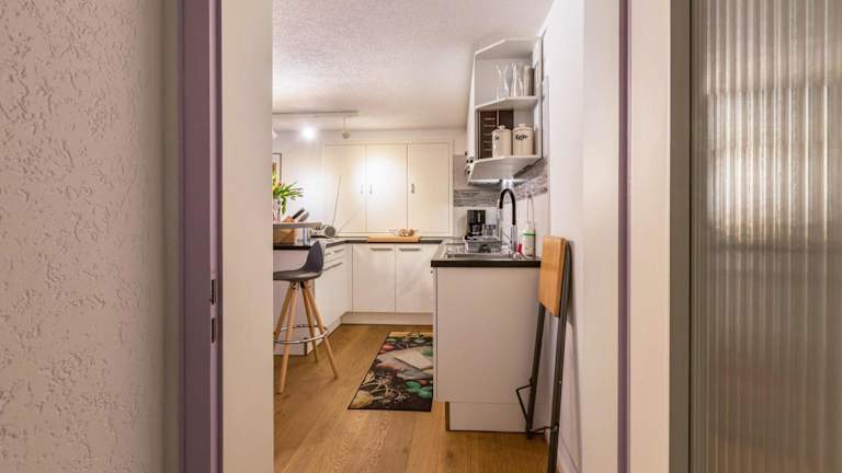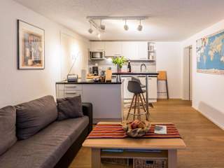 Die Ferienwohnung verfügt über eine vollständige Küche, die mit einem Kühlschrank und einem Geschirrspüler ausgestattet ist. Hier können Gäste ihre eigenen Mahlzeiten zubereiten. Weitere Verpflegungsmöglichkeiten sind nicht angegeben.