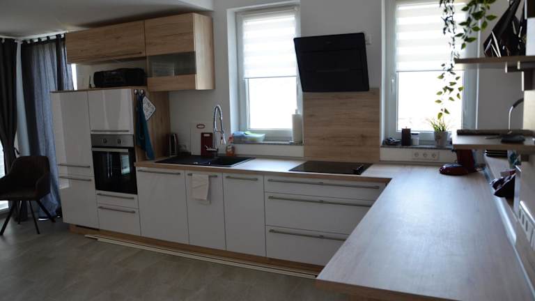 Das Ferienhaus verfügt über eine gut ausgestattete Küche mit Kühlschrank und Geschirrspüler, die die Zubereitung eigener Mahlzeiten ermöglicht. Zusätzliche Verpflegung wird nicht angeboten.