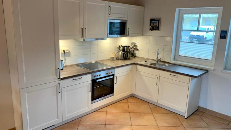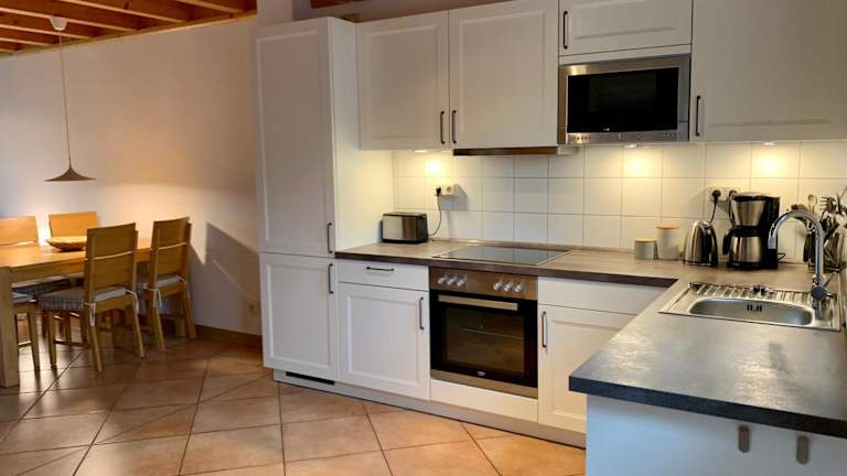 Eine gut ausgestattete Küche mit Kühlschrank und Geschirrspüler ist im Ferienhaus vorhanden. Informationen über spezifische Verpflegungsmöglichkeiten sind nicht angegeben.