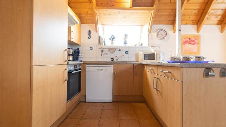 Das Ferienhaus ist mit drei Schlafzimmern ausgestattet und bietet einen Fernseher mit Kabelkanälen. Die voll ausgestattete Küche beinhaltet einen Kühlschrank, Geschirrspüler, Waschmaschine, Ofen und Mikrowelle.