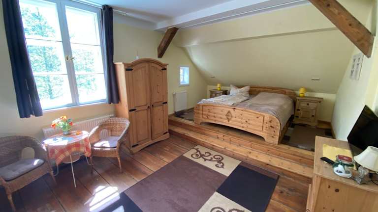 Die Museumsherberge Glashütte bietet helle und geräumige Zimmer, die mit Holzmöbeln und einem Holzboden eingerichtet sind. Jedes Zimmer verfügt über einen Sitzbereich und ein eigenes Bad mit Dusche. Die Unterkunft wurde liebevoll renoviert und bietet eine gemütliche Atmosphäre.
