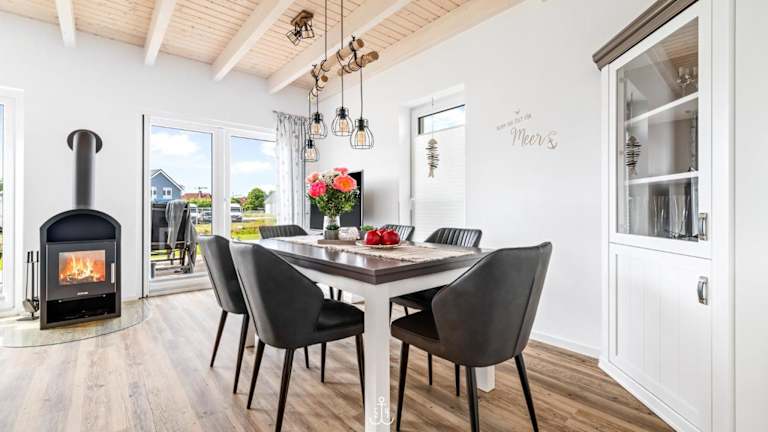 Das Ferienhaus Lütte Diekhuus verfügt über zwei Schlafzimmer, ein Wohnzimmer sowie eine gut ausgestattete Küche mit Kühlschrank und Geschirrspüler. Ein Fernseher ist ebenfalls vorhanden.