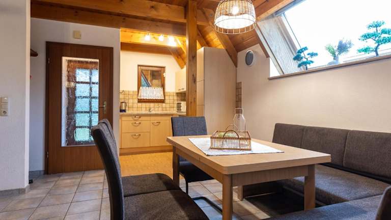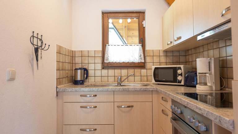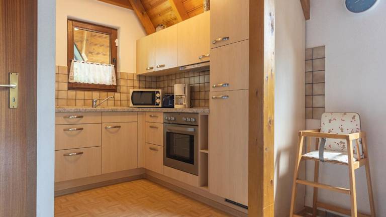 Es stehen Kochmöglichkeiten in der gut ausgestatteten Küche zur Verfügung, darunter ein Kühlschrank und ein Ofen. Keine Informationen zu weiteren Verpflegungsmöglichkeiten sind vorhanden.