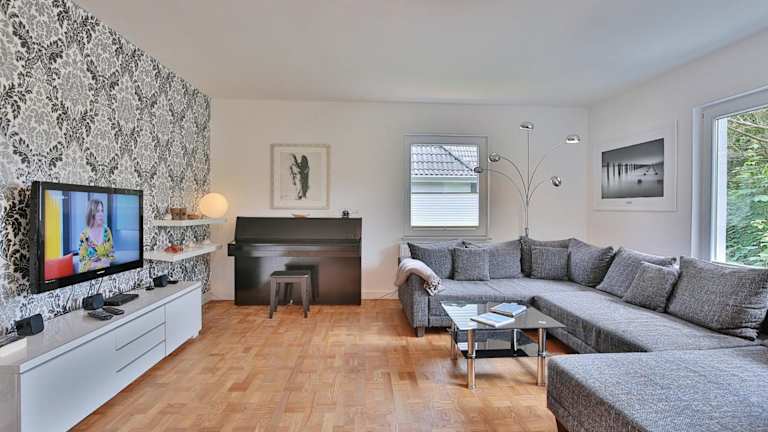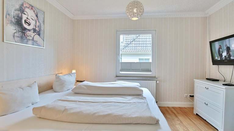 Die Ferienwohnung verfügt über ein Schlafzimmer, ein Wohnzimmer und eine gut ausgestattete Küche mit Kühlschrank und Geschirrspüler. Des Weiteren ist ein TV vorhanden. Bitte beachten Sie, dass Bettwäsche und Handtücher nicht im Preis inbegriffen sind, diese können jedoch gegen eine Gebühr von 30 Euro pro Person gemietet werden.