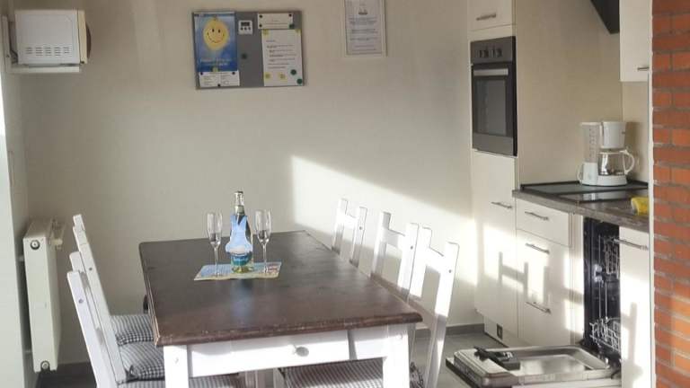 Das Apartment im Ferienhaus Robbe bietet Platz für bis zu 4 Personen und verfügt über 2 Schlafzimmer, ein gemütliches Wohnzimmer und eine voll ausgestattete Küche. Zur Ausstattung gehören ein Flachbild-TV, kostenfreies WLAN und ein Badezimmer mit Dusche. Handtücher und Bettwäsche werden gestellt, so dass Sie sich um nichts kümmern müssen. Von der Terrasse aus haben Sie einen schönen Blick auf den Garten und können die frische Luft und die Ruhe genießen.