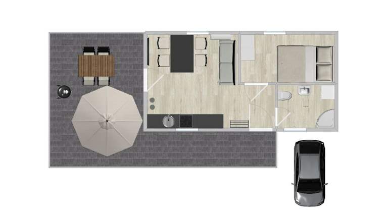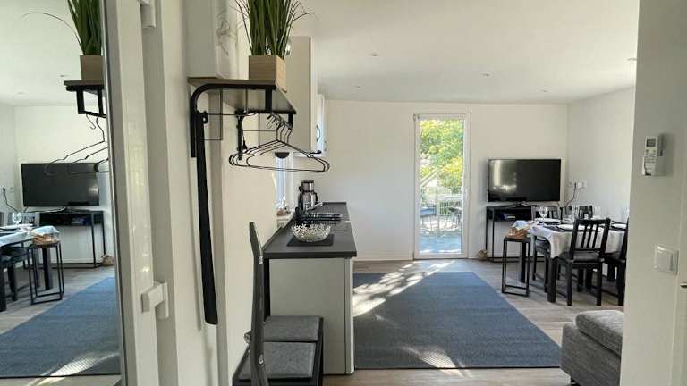 Die Ferienwohnung ist klimatisiert und besteht aus 1 Schlafzimmer, einem Wohnzimmer sowie einer voll ausgestatteten Küche mit Kühlschrank und Kaffeemaschine. Zur Ausstattung gehört ebenfalls ein Badezimmer mit Dusche und Haartrockner. Handtücher und Bettwäsche werden bereitgestellt.