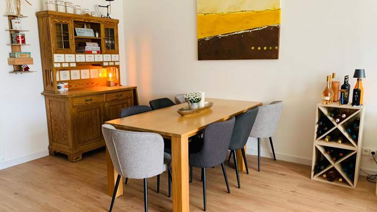 Das Ferienhaus Sonnenaufgang bietet Platz für bis zu 6 Personen. Es verfügt über 3 Schlafzimmer, ein gemütliches Wohnzimmer und eine voll ausgestattete Küche mit Kühlschrank und Kaffeemaschine. Zwei Badezimmer mit Dusche und Haartrockner stehen ebenfalls zur Verfügung. Handtücher und Bettwäsche werden im Ferienhaus gestellt, so dass Sie sich um nichts kümmern müssen.