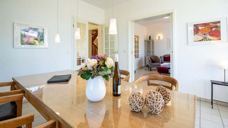 Das Ferienhaus bietet drei Schlafzimmer und ist mit einem Flachbild-TV sowie einer voll ausgestatteten Küche ausgestattet. Die Küche beinhaltet einen Kühlschrank, Geschirrspüler, Waschmaschine, Ofen und Mikrowelle. Handtücher und Bettwäsche werden bereitgestellt, und es stehen ein Balkon sowie Familienzimmer zur Verfügung.