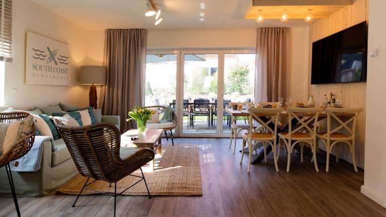 Das Ferienhaus SOUTH COAST bietet Ihnen eine gemütliche und komfortable Unterkunft. Es verfügt über kostenfreies WLAN, Sat-TV und eine Waschmaschine. Die Küche ist gut ausgestattet mit einem Kühlschrank und einem Backofen, so dass Sie Ihre eigenen Mahlzeiten zubereiten können. Das Ferienhaus verfügt auch über eine Terrasse, auf der Sie die frische Luft und die schöne Umgebung genießen können. Kostenfreie Privatparkplätze stehen Ihnen ebenfalls zur Verfügung.