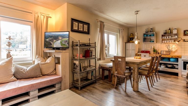 Ein großes Ferienhaus direkt an der Elbe gelegen mit großer Wohnküche, 3 Schlafzimmern und viel Platz für die ganze Familie. Nur eine Straße und der Elbradweg trennt das Haus vom Elbestrand.