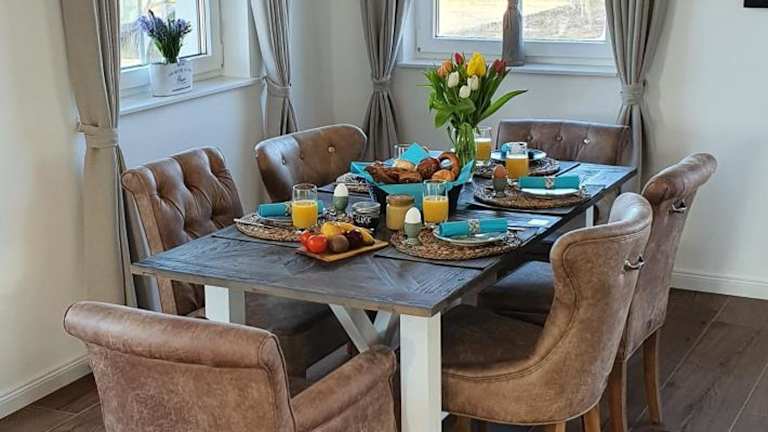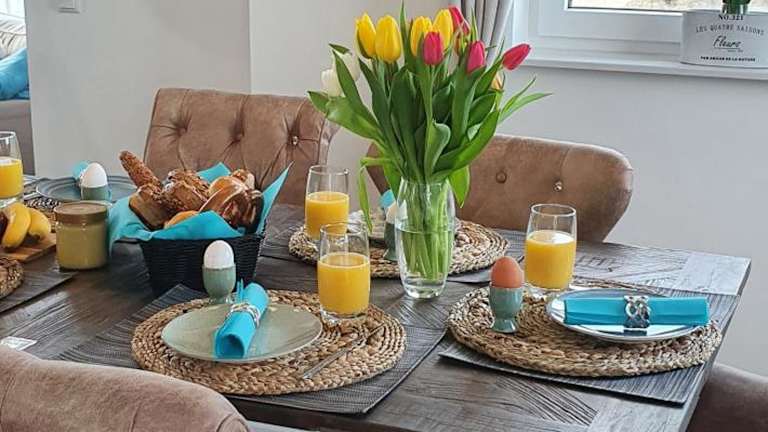 Das Ferienhaus verfügt über 3 Schlafzimmer und ein Wohnzimmer mit Flachbild-TV. Es beinhaltet eine gut ausgestattete Küche mit Kühlschrank und Geschirrspüler sowie 3 Badezimmer mit Dusche. Für zusätzlichen Komfort können Handtücher und Bettwäsche gegen Aufpreis bereitgestellt werden.