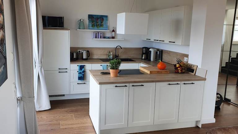 Das Ferienhaus Strandjuwel befindet sich in Dranske, etwa 2,7 km vom Strand Goos entfernt. Die nahegelegene Nordwestküste Wittow und Kreptitzer Heide liegt 2,4 km entfernt. Kap Arkona ist in einer Entfernung von 16 km erreichbar. Der nächstgelegene Flughafen ist der Flughafen Bornholm, der 144 km von der Unterkunft entfernt ist.