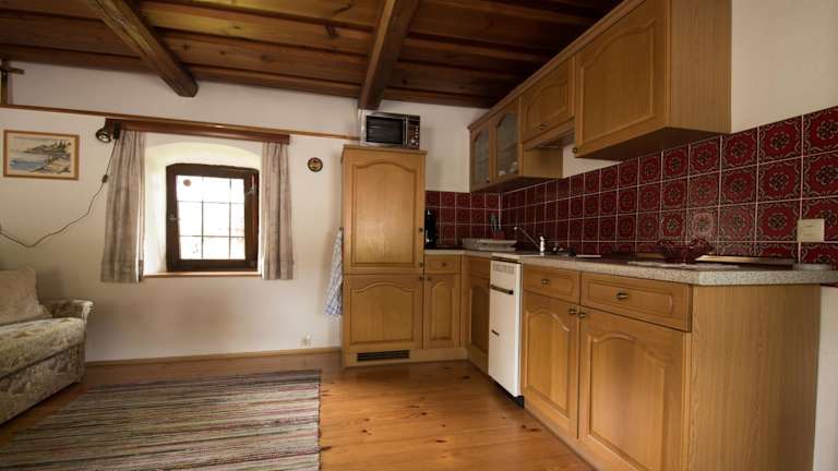 Das Ferienhaus Toff ist ein charmantes, renoviertes Bauernhaus mit viel Charakter. Es verfügt über ein gemütliches Wohnzimmer, eine gut ausgestattete Küche und ein Badezimmer auf der unteren Etage. Im Obergeschoss finden Sie ein geräumiges Schlafzimmer mit einem rustikalen Balkon aus Holz, von dem aus Sie die Umgebung genießen können. Die Einrichtung ist rustikal und gemütlich, um Ihnen einen angenehmen Aufenthalt zu bieten.