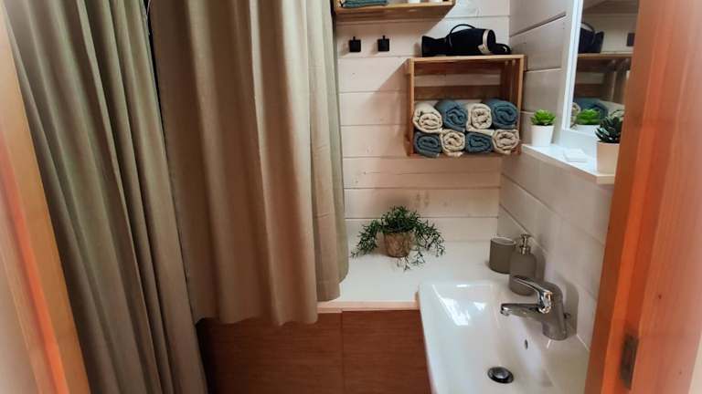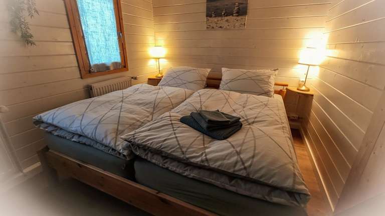 Das Ferienhaus verfügt über eine Klimaanlage und bietet Platz in zwei Schlafzimmern sowie einem Wohnzimmer. Die voll ausgestattete Küche ist mit einem Kühlschrank und einer Kaffeemaschine ausgestattet. Ein Badezimmer mit Dusche und Haartrockner sowie die Bereitstellung von Handtüchern und Bettwäsche sind ebenfalls vorhanden.