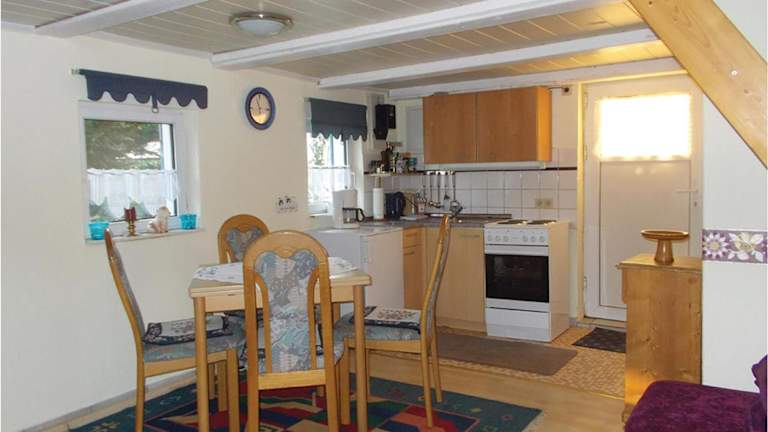 Das Ferienhaus verfügt über zwei Schlafzimmer und ein Wohnzimmer. Die Küchenzeile ist komplett ausgestattet mit Kühlschrank und Kaffeemaschine. Das Badezimmer ist mit einer Dusche ausgestattet.