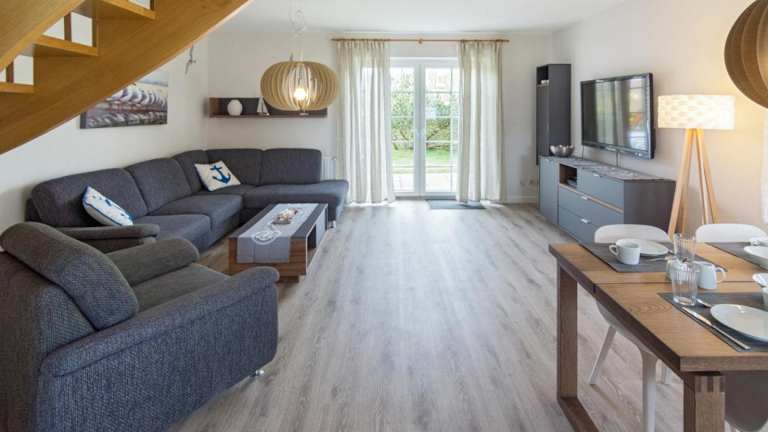 Das Ferienhaus Wassermann bietet gemütliche und gut ausgestattete Zimmer. Hier finden Sie einen komfortablen Sitzbereich, einen Essbereich und eine praktische Küchenzeile mit einem Backofen. Das eigene Bad ist mit einer Badewanne oder einer Dusche ausgestattet. Zusätzlich steht Ihnen Sat-TV zur Verfügung, um sich auch im Urlaub unterhalten zu können.