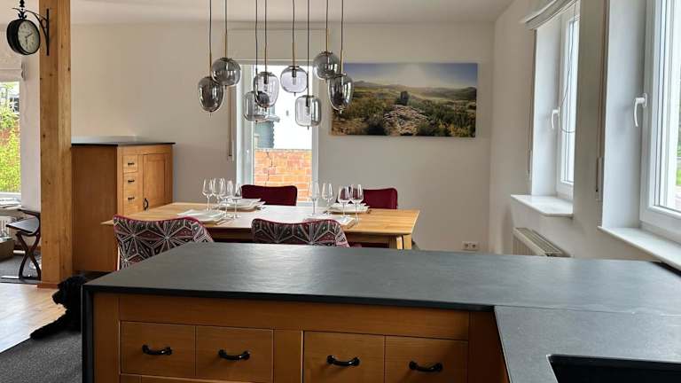 Das Ferienhaus Wein & Wald mit Gartensauna befindet sich in Landau in der Pfalz, in der Nähe von Sehenswürdigkeiten wie dem Badischen Staatstheater und Schloss Karlsruhe. Die Umgebung bietet Möglichkeiten für Outdoor-Aktivitäten wie Radfahren und Wandern.