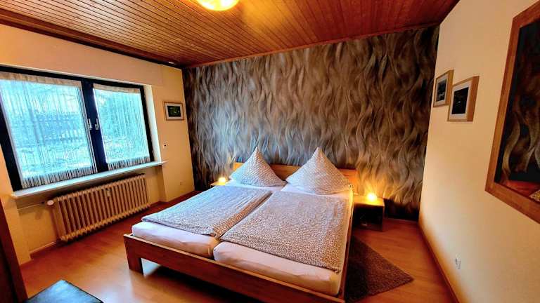 Das Apartment im Ferienhaus Wilder Hunsrück bietet Platz für bis zu 8 Personen und verfügt über 4 gemütliche Schlafzimmer. Das Wohnzimmer lädt zum Entspannen ein und ist mit einem Flachbild-TV ausgestattet. Die voll ausgestattete Küche mit Kühlschrank und Geschirrspüler ermöglicht es Ihnen, Ihre eigenen Mahlzeiten zuzubereiten. Das Apartment verfügt auch über 2 Badezimmer mit Dusche. Handtücher und Bettwäsche werden gestellt, so dass Sie sich um nichts kümmern müssen.