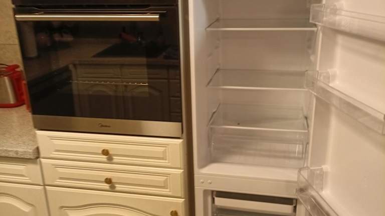 Eine voll ausgestattete Küche steht zur Verfügung, in der auch eine Kaffeemaschine und ein Kühlschrank vorhanden sind.
