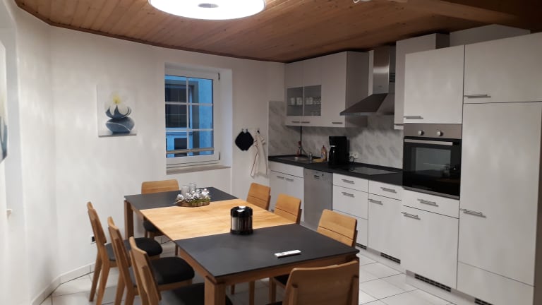 Das an der Mosel gelegene Ferienhaus Würzgarten wurde 2018 größtenteils neu renoviert und möbliert, es ist ganzjährig buchbar und wird als Nichtraucherhaus geführt. Das Mosel Ferienhaus bietet Platz für bis zu 10 Personen (idealerweise 8 Erwachsene und 2 Kinder) und eignet sich besonders für größere Familien, Freundeskreise, kleine Gruppen, Vereine, Clubs und kleine Firmen. Das Haus wurde im Herbst 2018 saniert, renoviert und komplett neu möbliert. Es verfügt im Erdgeschoss über den Eingangsbereich, eine große Wohnküche (ca. 21m²), einen Abstellraum und das Treppenhaus für den Zugang zu den Räumen im OG und DG. Im OG und im DG befinden sich jeweils 2 Schlafzimmer und 2 Duschbäder mit WC (Details siehe Zimmer). Im Keller, dieser ist durch eine separate Tür ebenerdig von außen zugänglich, befindet sich eine ca. 15m² große Fahrradgarage mit Lademöglichkeiten für E-Bikes. Da die Fahrradgarage über ausreichend Tageslicht, einen Laminatboden und Heizung verfügt, kann sie nach Absprache auch anderweitig benutzt werden.