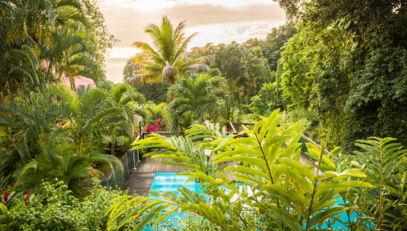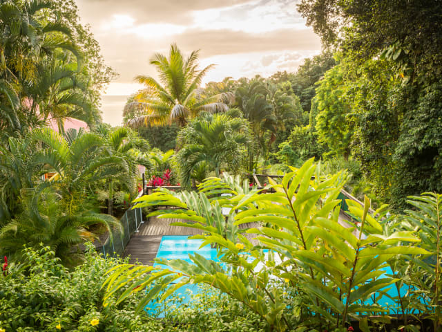 Victoria und Yves empfangen Sie in ihrem kleinem « Paradis » Erholen Sie sich im Schwimmbad, das zum Schutz der Kinder mit einem Sicherheitszaun abgegrenzt ist. Trinken Sie ihren Punsch, grillen Sie sich eine Languste oder legen Sie sich einfach nur in den Liegesessel um ihre Ferien zu geniessen. Unsere 5 Ferienhäuser für 2 bis 6 Personen sind umgeben vom tropischem Wald. Gelegen an der "Küste unter dem Wind", oberhalb des berühmten Naturreservats Cousteau, können Sie von hier aus die Schönheit der Natur entdecken. Die Bungalows befinden sich 2,5 km vom Strand. Von ihrer Wohnung aus können sie schöne Wanderungen unternehmen. Wir sprechen beide Deutsch, da wir 3 Jahren in Düsseldorf gewohnen haben. Ich, Victoria, spreche auch English, da ich engländerin bin. Unsere Unterkünfte sind für Personen mit eingeschränkter Mobilität nicht zugänglich.