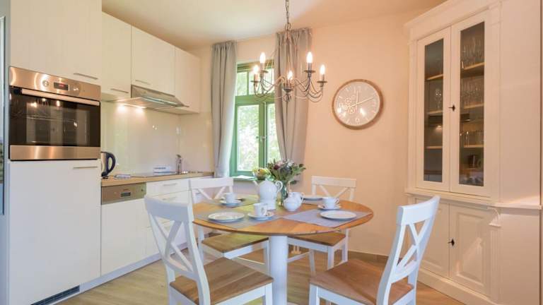 Das Ferienhaus Strandperlen Buchenhof 6a (Typ III) verfügt über eine Terrasse, 2 Schlafzimmer, ein Wohnzimmer und eine gut ausgestattete Küche. Die Küche ist mit einem Kühlschrank und einem Backofen ausgestattet, so dass Sie Ihre eigenen Mahlzeiten zubereiten können. Im Wohnzimmer finden Sie einen Fernseher mit Satellitenempfang für Ihre Unterhaltung.